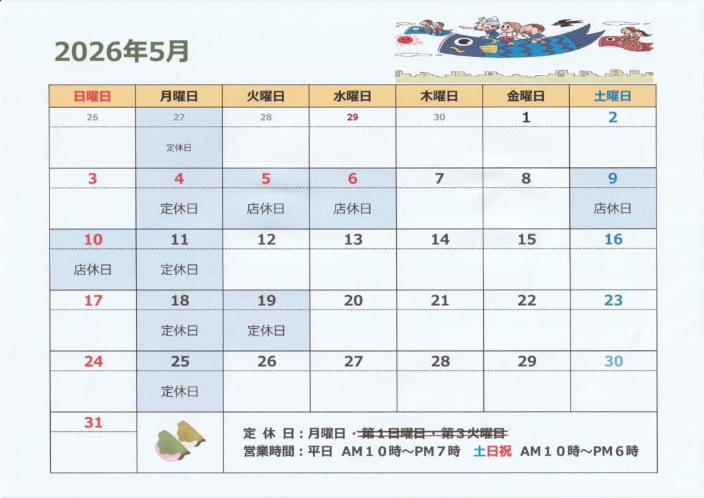 5月の営業日のご案内です。