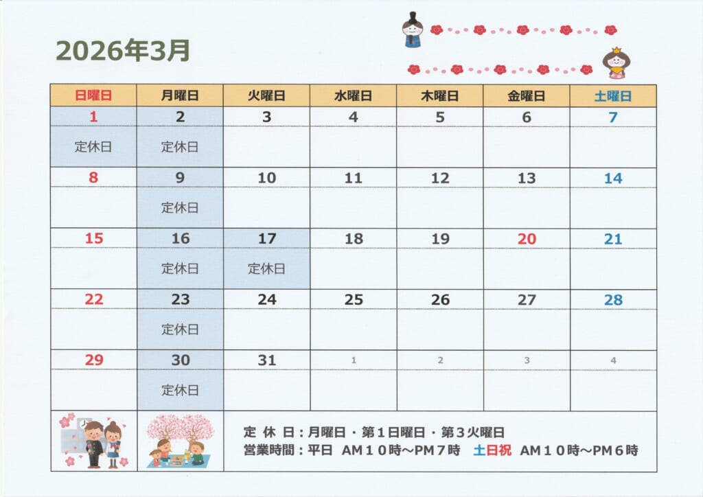 定休日:月曜日・第1日曜日・第3火曜日